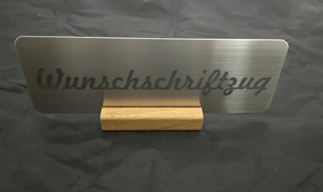 BSB Design Edelstahl Schild mit Ihrem mit Wunschschriftzug auf Holzsockel