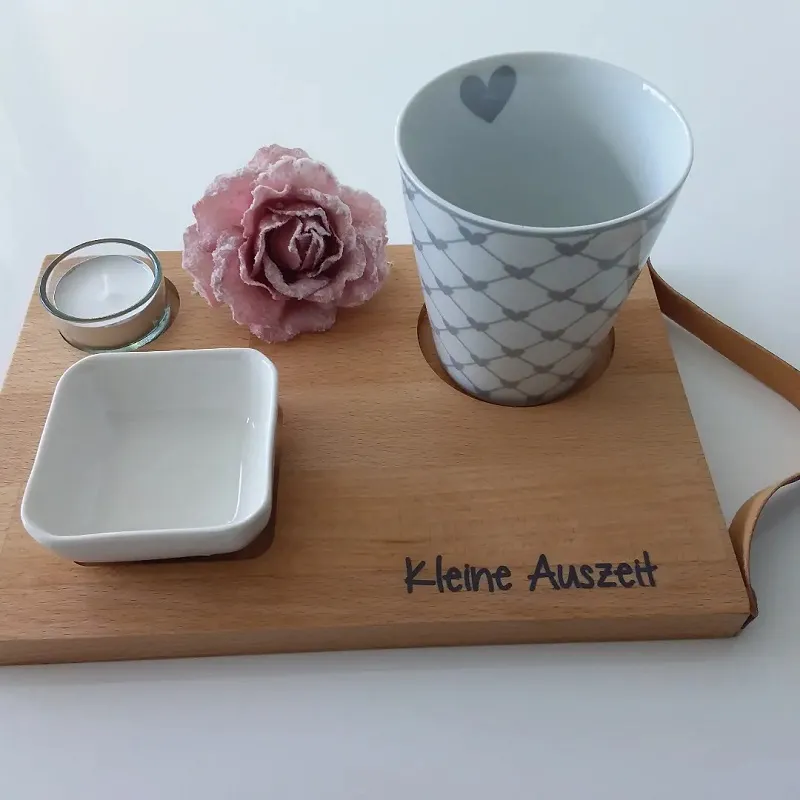 Kerzentablett FOR ONE, wenn der Alltag zu hektisch wird, ist es Zeit für einen BreakLiebevolles Mini-Tablett für die kleine Auszeit zwischendurch von Ideenreich. Wir lieben es natürlich, puristisch und zeitlos. Eine Soforthilfe bei Stress und Hektik in unserem Alltag, ist sich öfters am Tag eine kleine Auszeit zu gönnen, um Kraft und Energie zu tanken. Nehmen Sie sich Zeit zum Durchatmen und gönnen Sie sich Ihr Lieblingsgetränk auf unserem kleinen Tablett. Zünden sie sich eine Kerze an, naschen etwas Süßes und atmen Sie bewusst durch. Fern von Lautstärke und Hektik kommen Sie zur Ruhe. Seien Sie achtsam sich selbst gegenüber. Wir haben alle nur einen Ort, an dem wir ein Leben lang zu Hause sind - unseren Körper.
